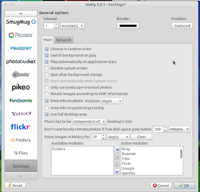 Wally merupakan Qt4 wallpaper changer (Membuat File Wallpaper yang dapat berganti otomatis), yang menggunakan berbagai sumber seperti file, folder, FTP folder jauh, Flickr, Yahoo, Panoramio, Pikeo, Ipernity, Photobucket, Buzznet, Picasa, SmugMug dan gambar Bing.Fitur :
